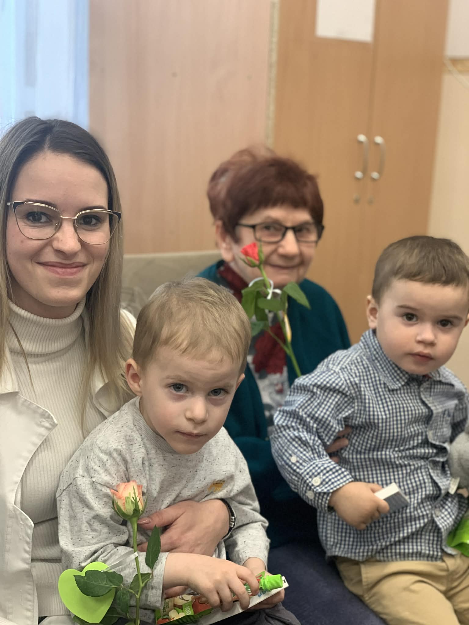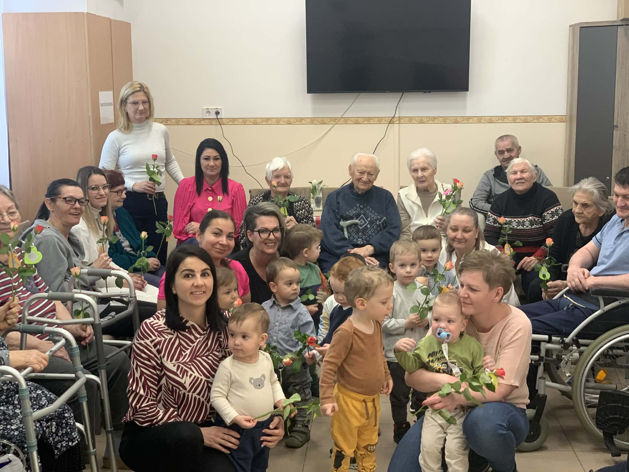Az idősek nagy örömmel és szeretettel ölelték magukhoz a kicsiket, akik virággal, versikével, csillogó szemekkel, apró mosolyokkal és sok-sok vidámsággal kedveskedtek az ellátottaknak és az Idősek Otthona munkatársainak.