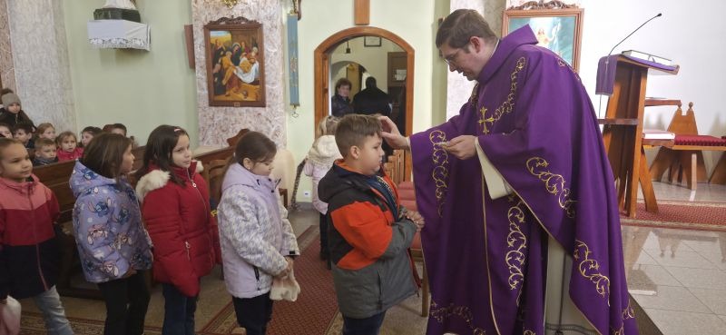 A szentmise keretében iskolalelkészünk hamut szentelt, majd keresztet rajzolt homlokunkra. Ahogy a hamu érintése megjelölte arcunkat, szinte kézzelfoghatóvá vált az üzenet: porból lettünk, és porrá leszünk. A hamu a mulandóság jele, a mi mulandóságunké, nem a másoké. Nem azért kapjuk, hogy mások fölött ítélkezzünk, hanem hogy saját életünkre tekintsünk őszintén és alázattal.A nagyböjt ezért lemondás és meghívás egyszerre: lehetőség arra, hogy tudatosabban válasszuk az örök szeretetet a mulandó dolgok helyett. Arra hív, hogy ne csak a homlokunkon viseljük a kereszt jelét, hanem a szívünkben is. Segít abban, hogy életünk irányát újra Isten felé fordítsuk, és engedjük, hogy Ő vezessen bennünket a feltámadás öröme felé.