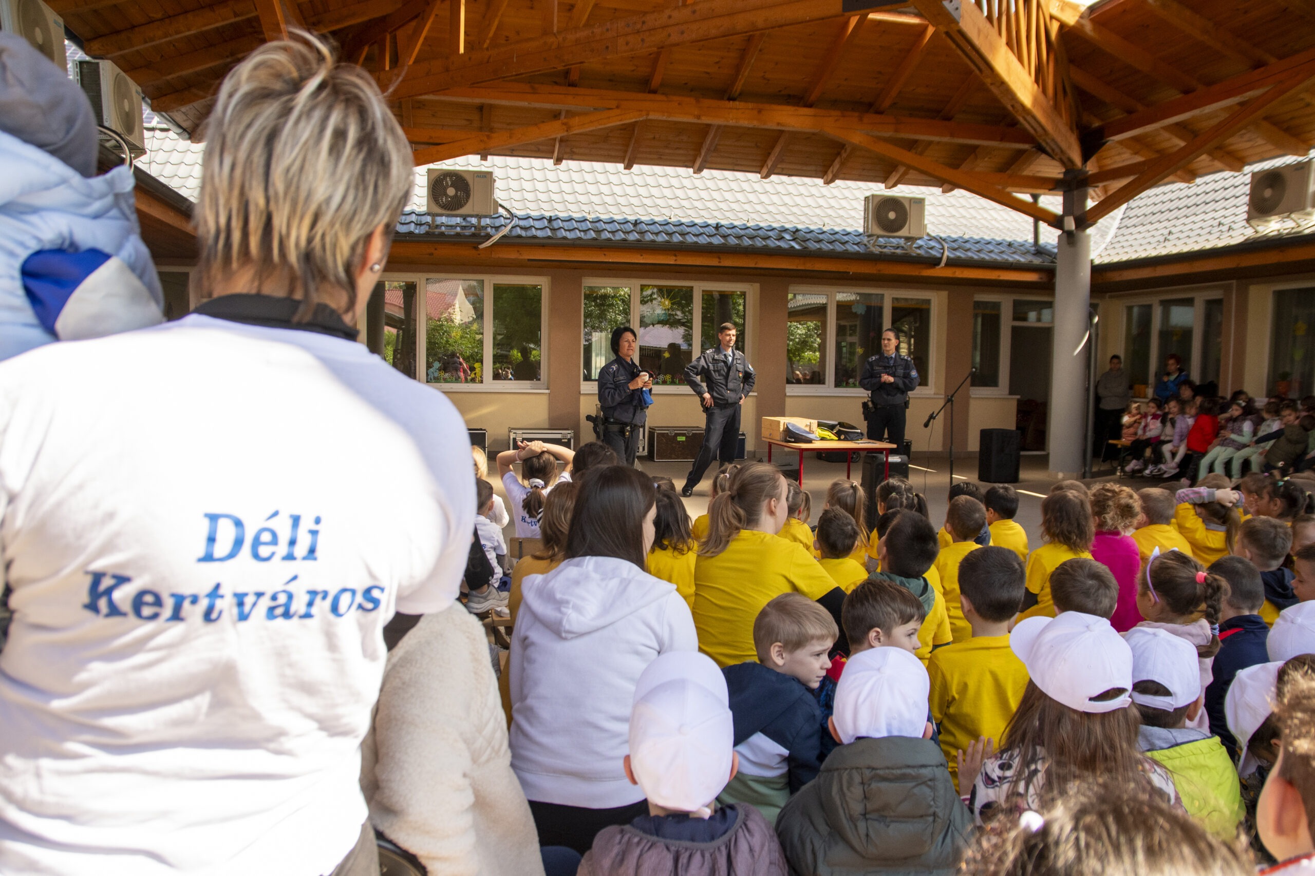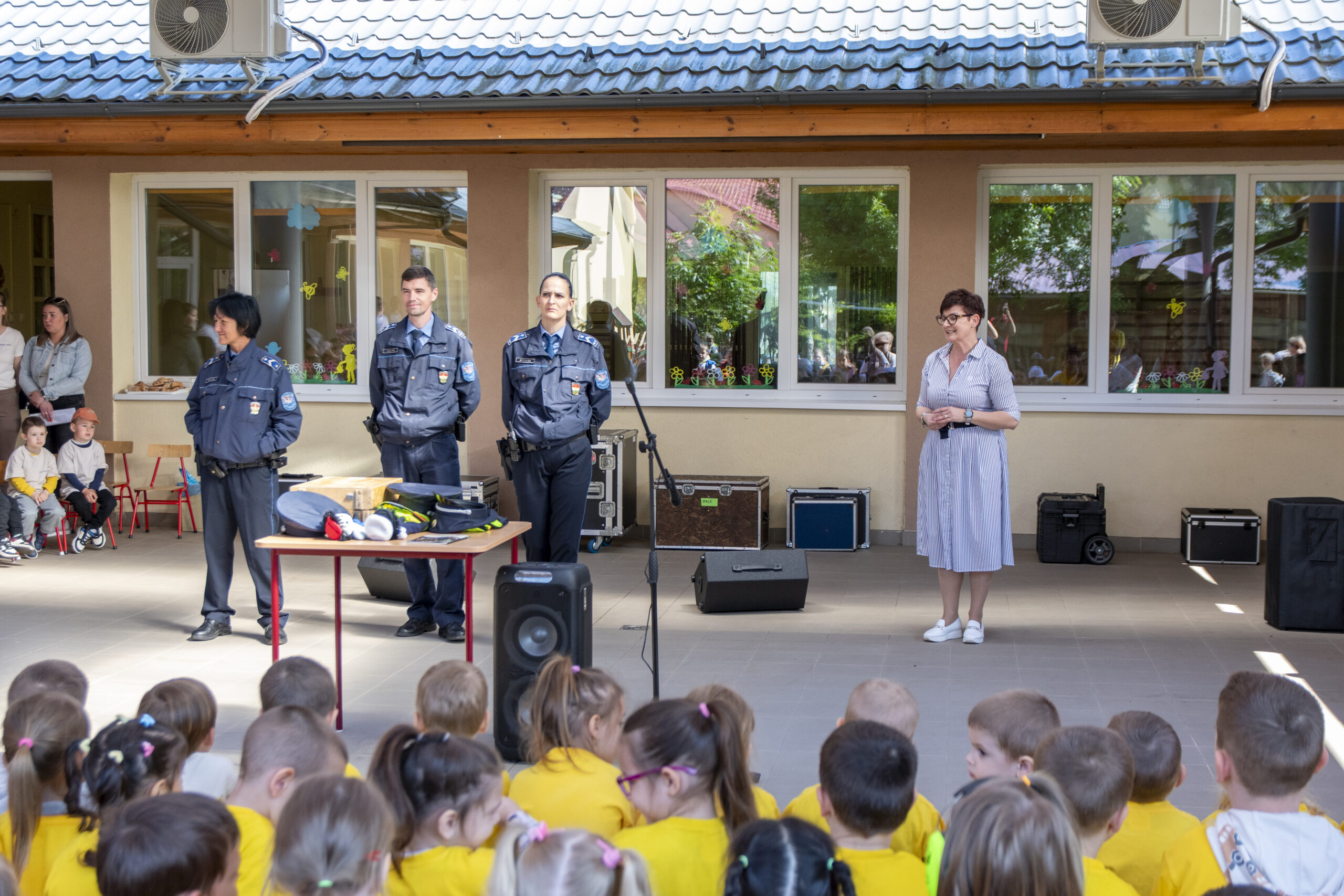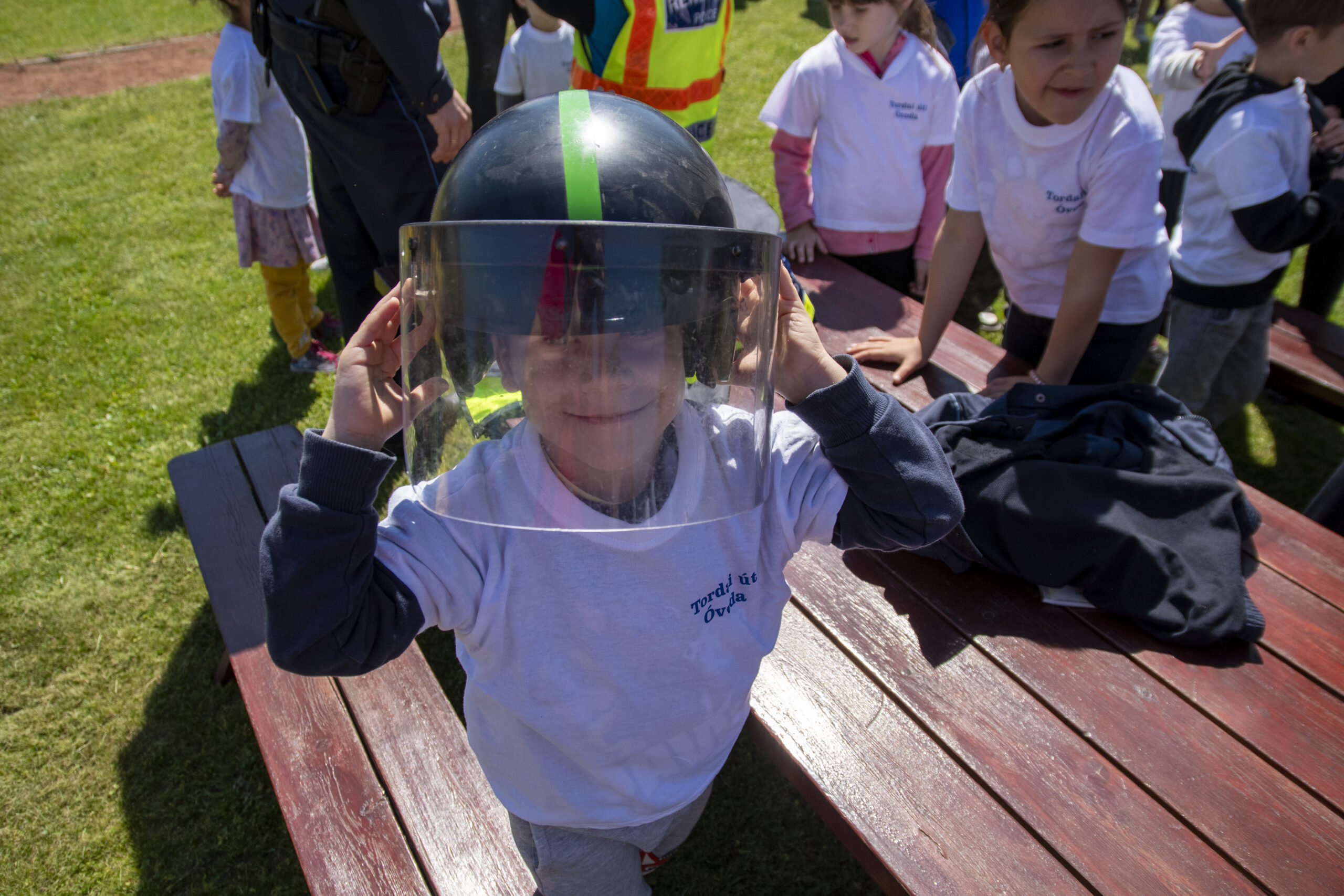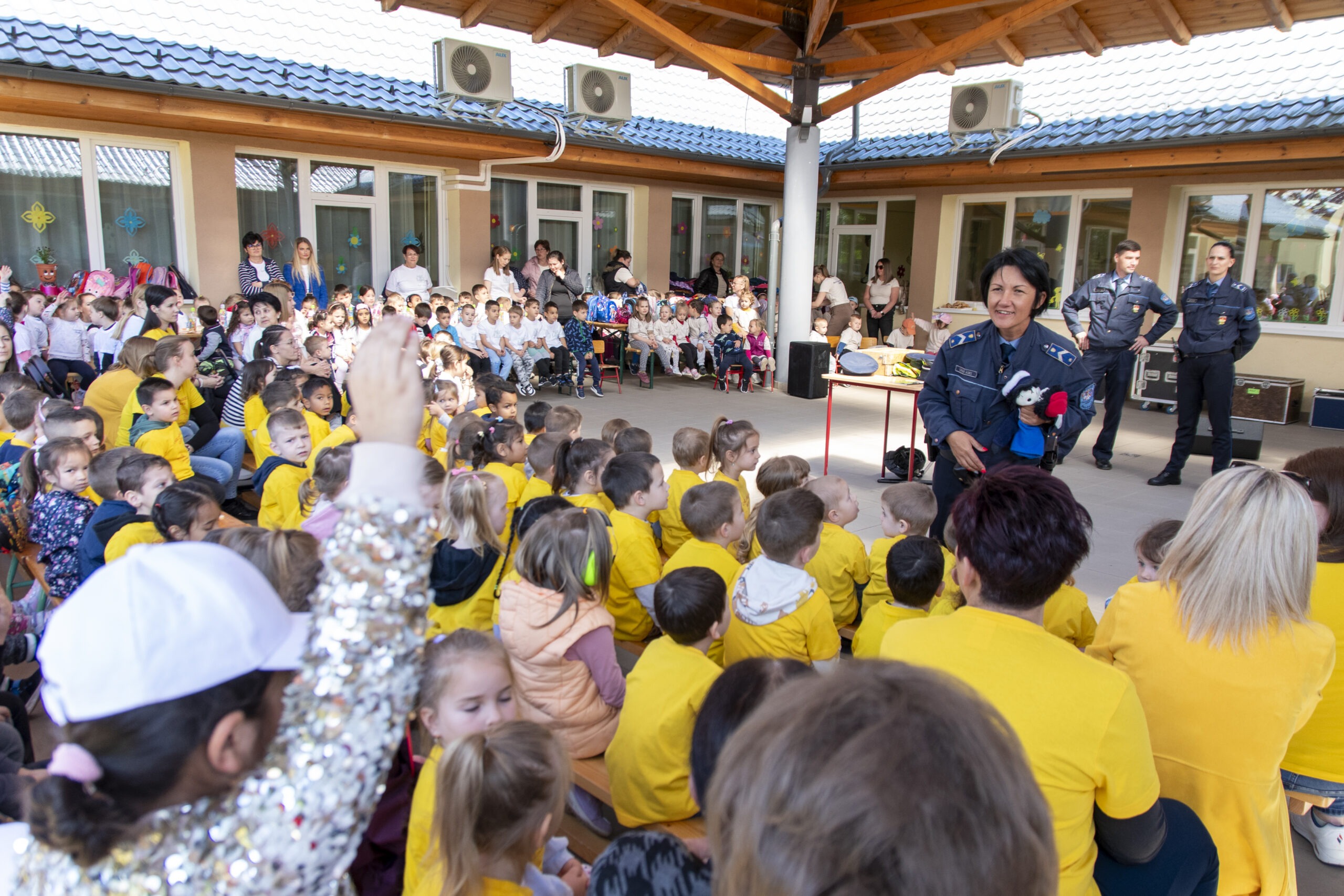 A délelőtt folyamán, az Ovizsaru program keretében sor került az eddigi ismeretek összegzésére, mely során tudatosult a gyermekekben, hogy 1-1 veszélyes helyzetekben kihez fordulhatnak, hiszen a rendőrök szolgálnak és védenek. Természetesen a kisebbek sem maradtak élmény nélkül. Ujjlenyomat, tenyérnyomat készült a vállalkozó kedvűeknek, illetve a különböző kellékeket is felpróbálhatták. Minden gyermek számára élmény jelentett, hogy beülhettek a rendőrautóba is. Ezúton is hálásan köszönjük a Kisvárdai Rendőrkapitányság dolgozóinak a kreatív, támogató együttműködést.