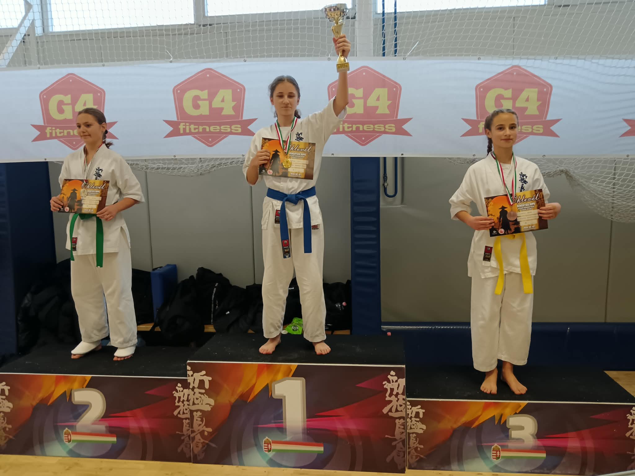 Aranyérem: Téglási Kamilla (kata), Szabó Lili (kumite), Tángyes Ricardó (kumite).
