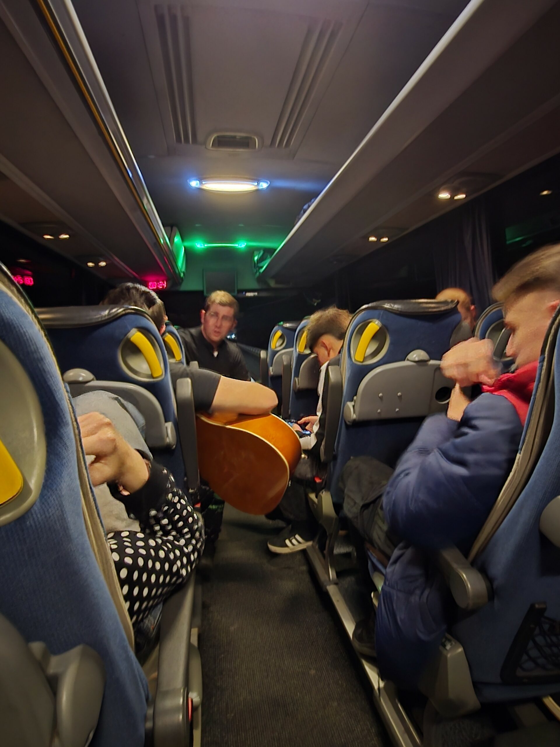 Feltöltődve a tanúságtételek, tanítások üzeneteivel, hazafelé úton gitárral kísért énekléssel folytattuk a mi közösségünk építését.