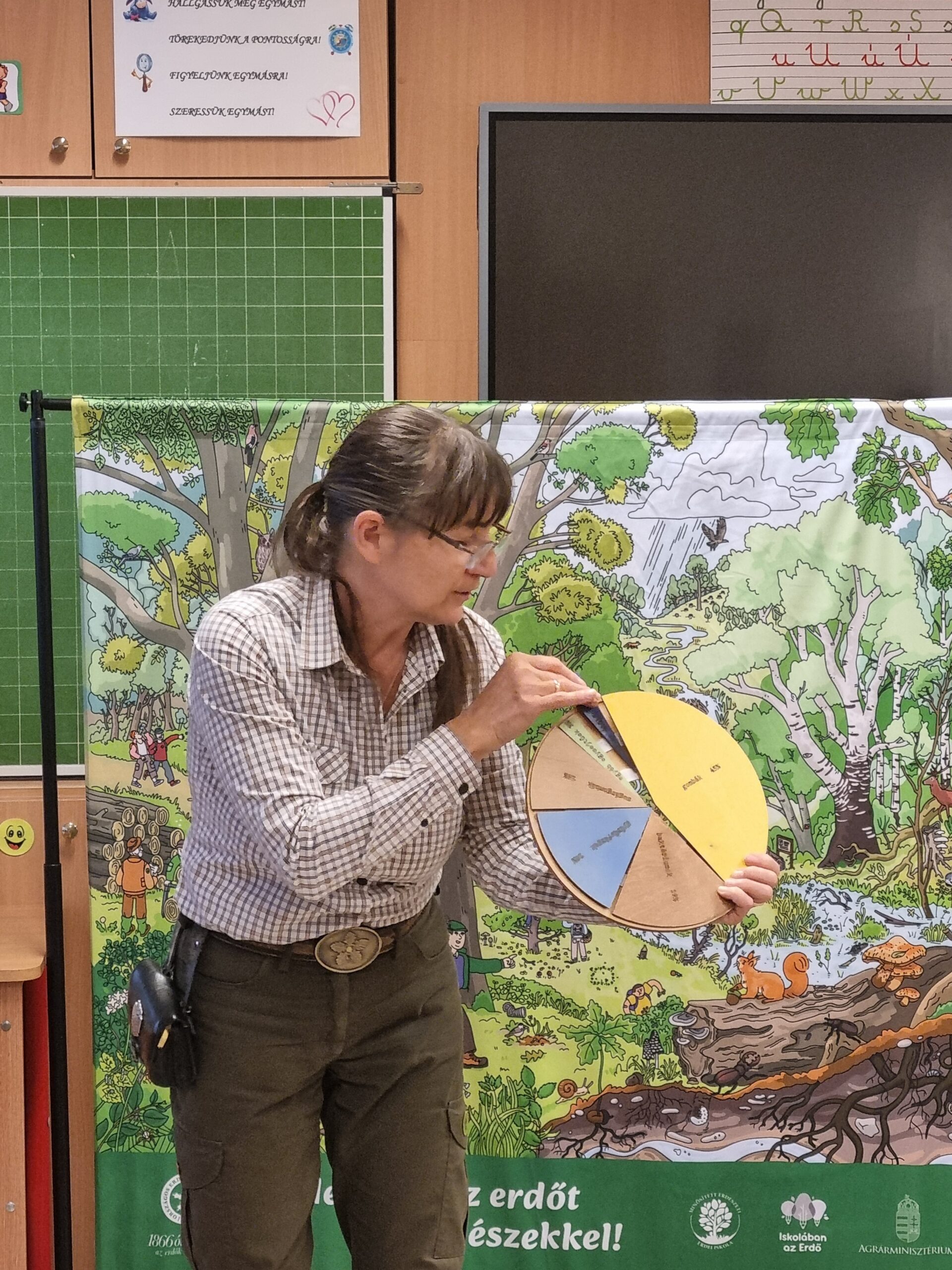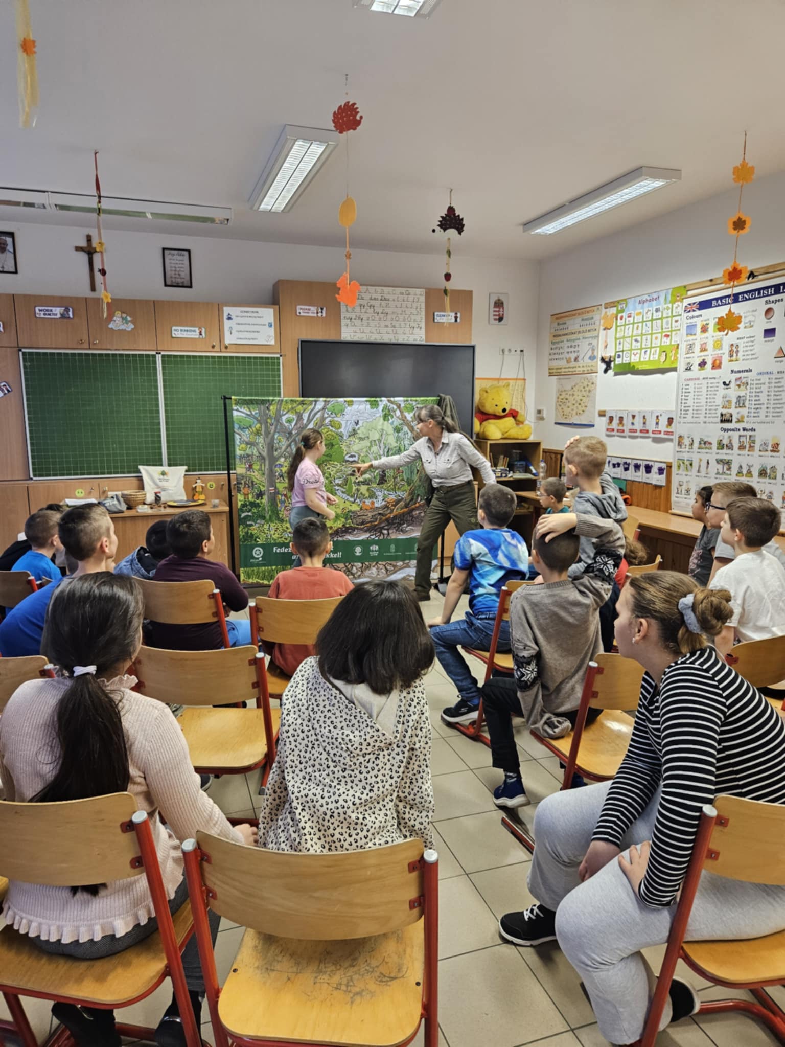 Rendkívül izgalmas és tartalmas interaktív előadás során hívták fel a gyermekek figyelmét a természettel való törődés fontosságára. Erdőben lenni jó, kirándulhatunk, feltöltődhetünk és megfigyelhetjük a természetet, ezt mindenki tapasztalta már. De mit ad nekünk az erdő? Mit tanít nekünk az erdő a fenntarthatóságról? Mit csinál egy erdész?Hogyan viselkedjünk az erdőben? Mit tanulhatunk az erdőtől, mint életközösségtől?- többek között ezekre a kérdésekre is választ kaphattunk az Iskolában az Erdő Program résztvevőiként.