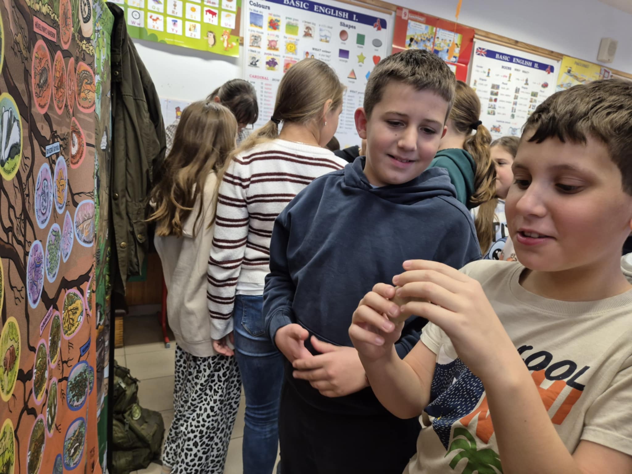 Gyermekeinkben a természet és a szülőföld szeretetének csíráját ápolni, gondozni szükséges, ezért különleges vendégeket hívtunk Teremtésvédő és Örökös Ökoiskolánkba szerda délelőtt. Pertilláné Bartha Enikő erdei iskola vezető munkatársával együtt erdőpedagógiai foglalkozásokat tartott alsós diákjainknak.
