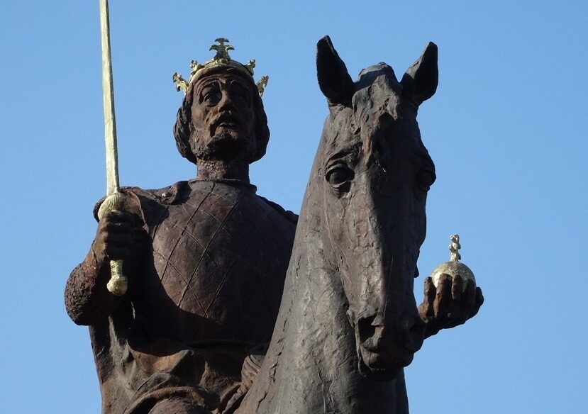 A város főterén, a városháza és a könyvtár épülete közé eső területen található Szent László király lovasszobra. 2000. június 24-én avatták fel az ötnegyedes életnagyságú lovasszobrot. Az andezit szikla talapzat 4,5 méter, míg a szoboralak 3 méter magas.