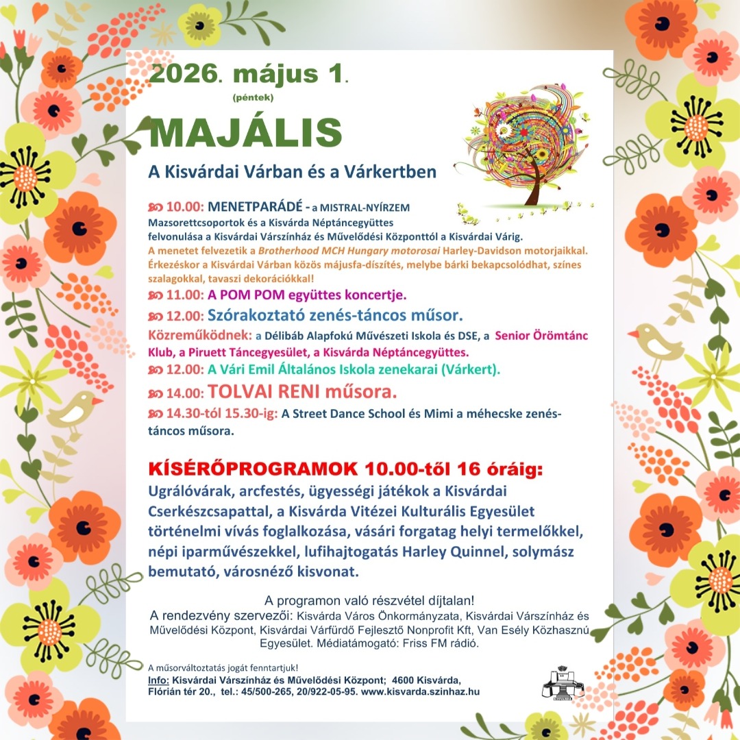 Ez a majális igazi közösségi élmény lesz: a találkozások, a mosolyok és a közös pillanatok napja. Ha egy igazán tartalmas, mégis könnyed hangulatú ünneplésre vágysz, Kisvárdán biztosan jó helyen leszel május 1-jén.
