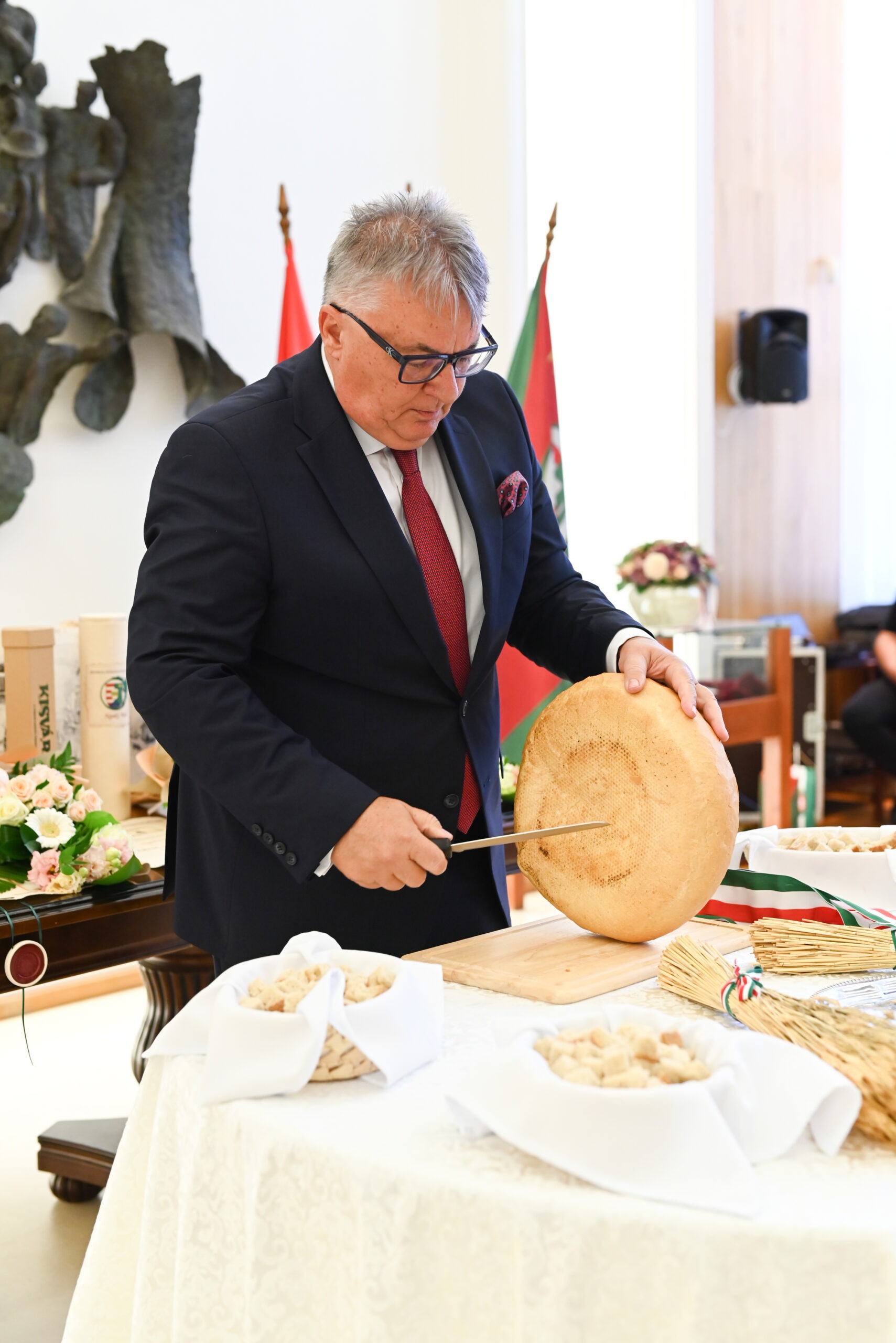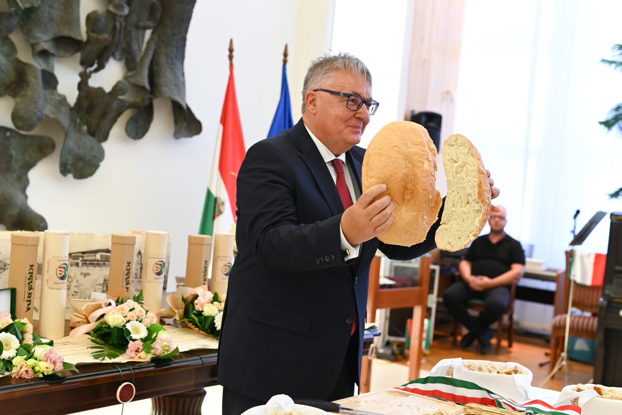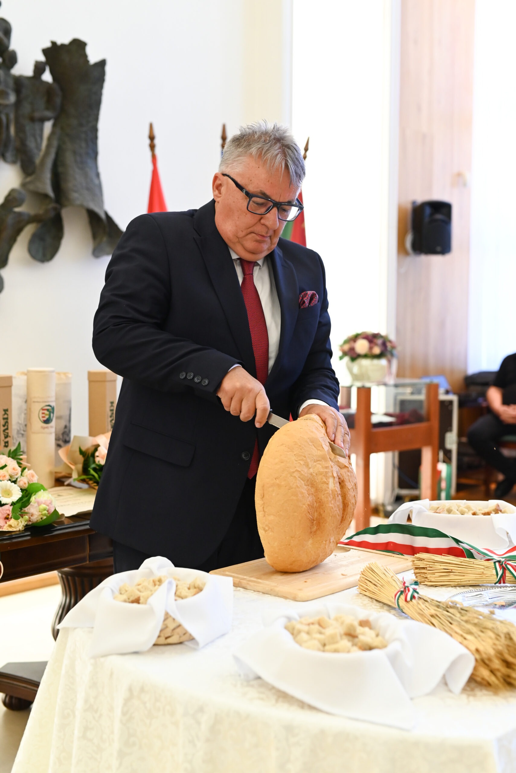Az ember legalapvetőbb élelmiszere a kenyér, mely az életet, a megélhetést és az otthont szimbolizálja. Az augusztus 20-ai állami ünnepen a nemzeti színű szalaggal átkötött kenyérrel fejezzük ki, hogy az élet, a haza és a hit összekapcsolódik. Az új kenyeret megáldották, megszentelték városunk történelmi egyházainak papjai, lelkészei; majd Deák Terézia énekelte a „Szép vagy gyönyörű vagy Magyarország” című dalt, hegedűn kísérte Baksa Hajnalka, zongorán pedig Miller Olga.