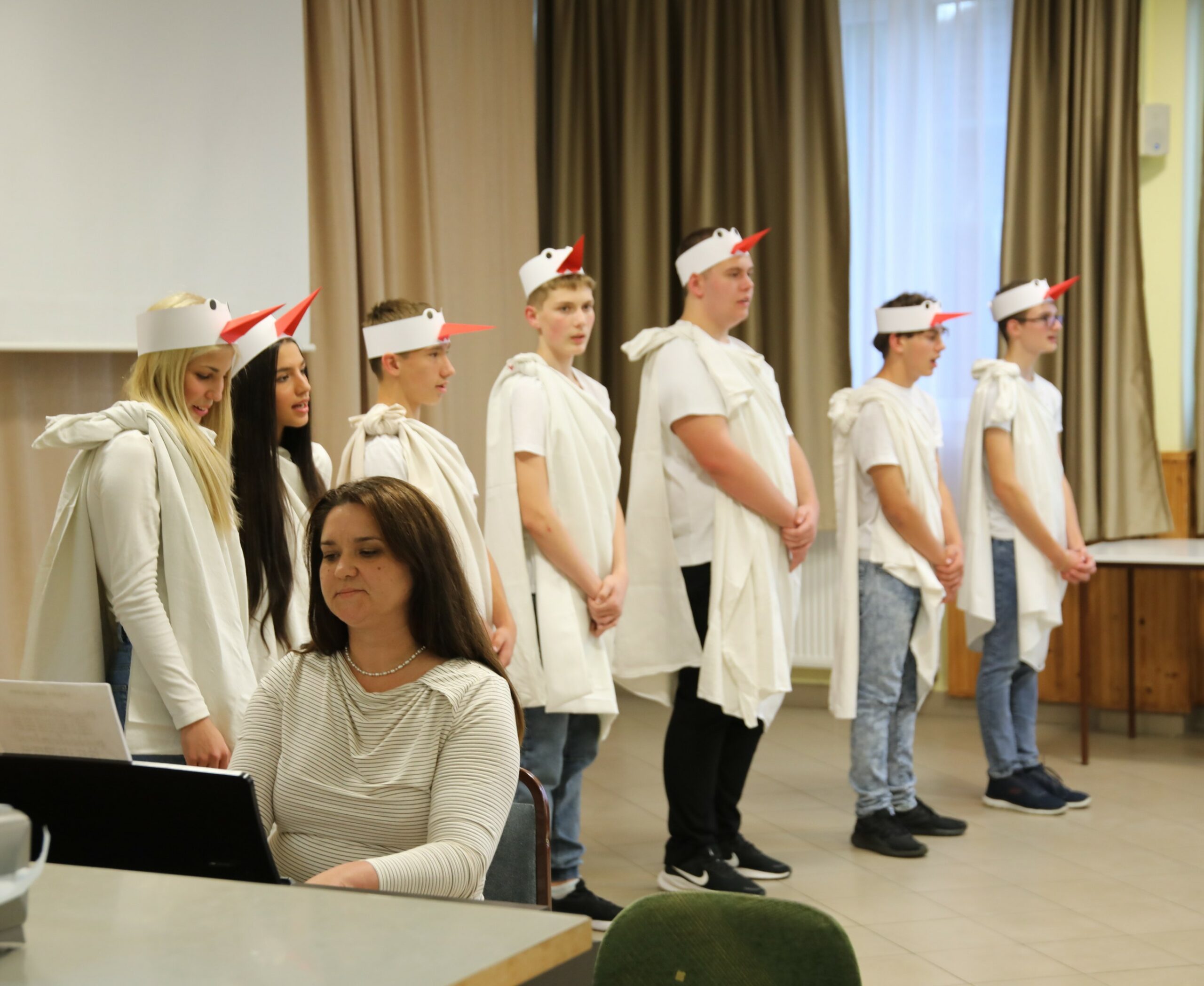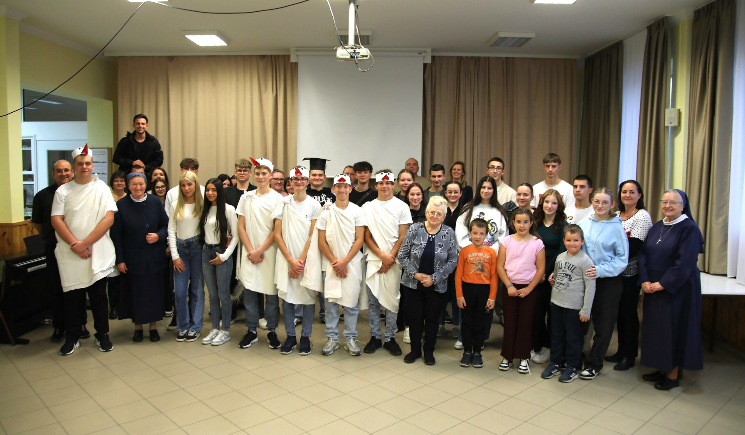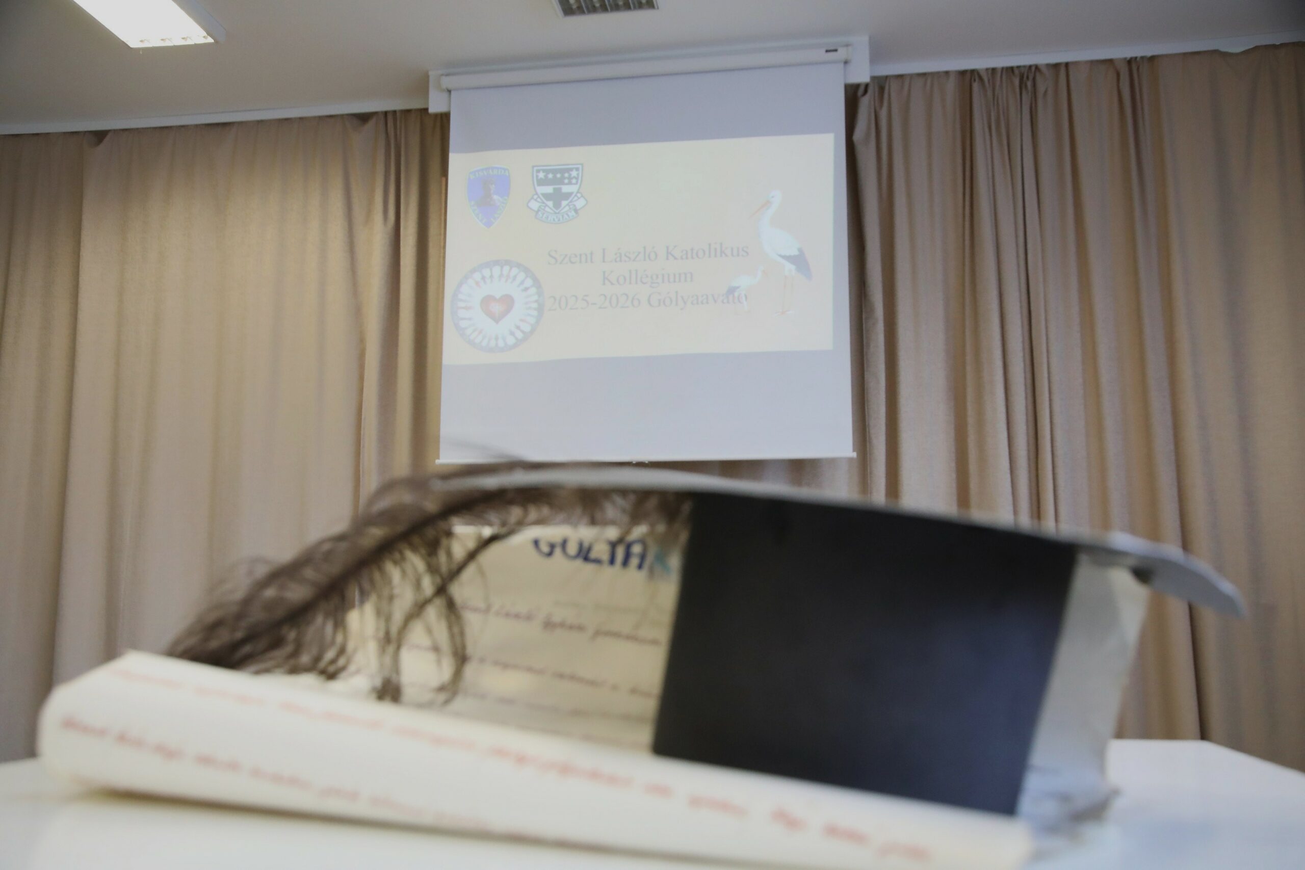 Az ünnepi pillanatot közös éneklés zárta, majd a gólyák büszkén, együtt zengték el az iskola himnuszát. A dal nemcsak az iskola hagyományait idézte, hanem megerősítette a jelenlévőkben: mindannyian egy nagycsalád tagjai vagyunk. A Szent László Katolikus Kollégium idei gólyaavatója így nem csupán vidám esemény volt, hanem valódi közösségi élmény, amelyben a nevetés, a zene és a hit egyaránt helyet kapott. Az új diákok immár teljes jogú tagjaivá váltak a kollégiumi közösségnek, szívükben a szentlászlós szellemiséggel, amely szerint: „Szeretettel, hitben és közösségben minden nap ajándék.”