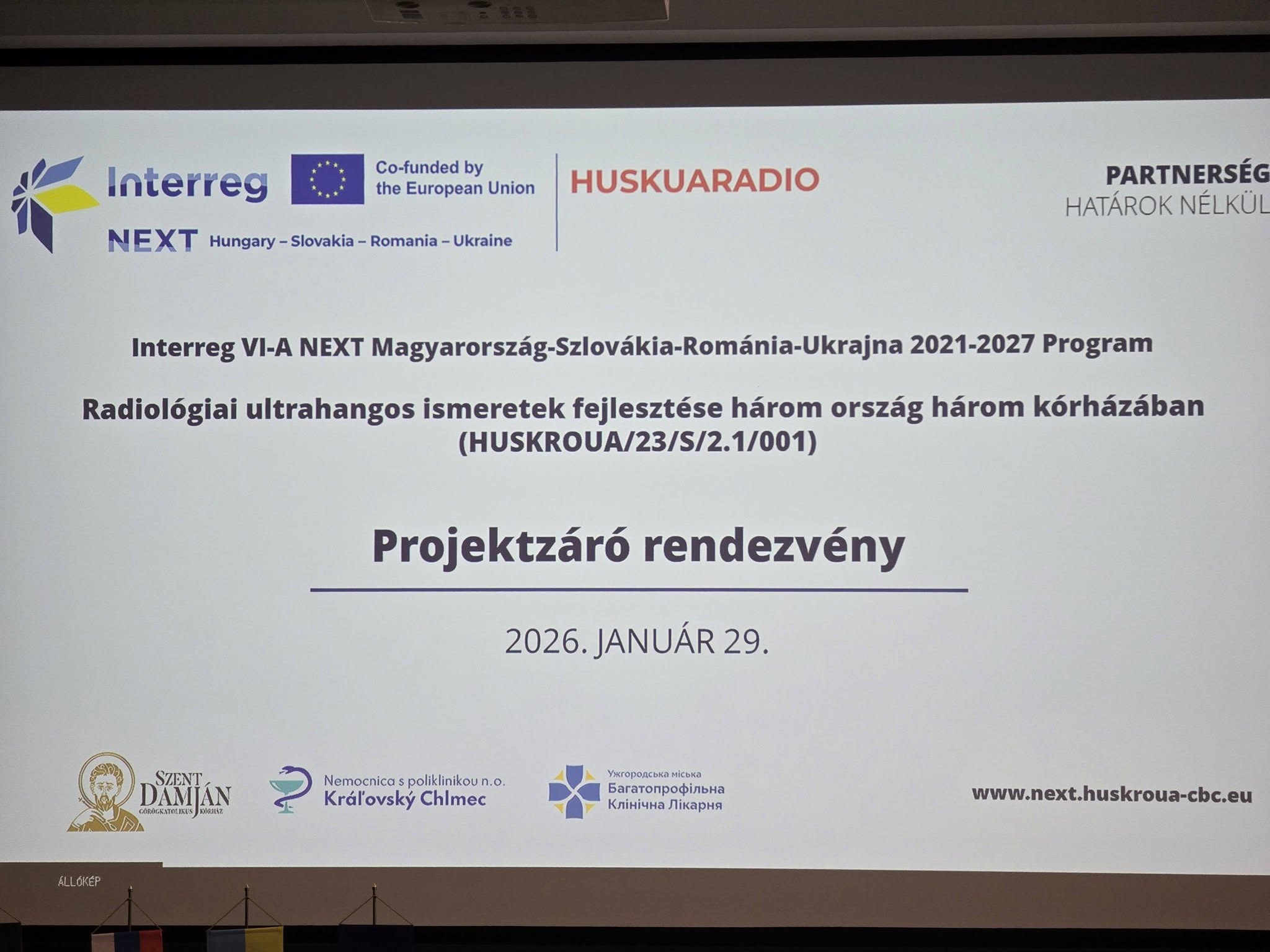 Január 29-én került sor a Radiológiai ultrahangos ismeretek fejlesztése három ország három kórházában című, HUSKROUA/23/S/2.1/001 azonosító számú projekt kisvárdai zárórendezvényére a Szent Damján Görögkatolikus Kórházban.